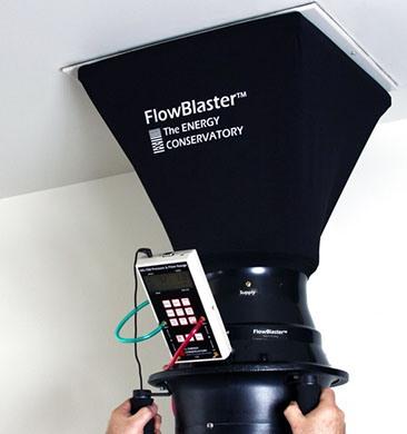 Duct Blower equipment works much the same way to evaluate duct system leakage. The duct system is temporarily sealed during testing and a smaller calibrated test fan is used to measure the leak rate and severity of leakage through air conditioning system ductwork and equipment.